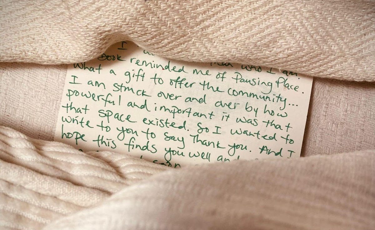 And so, Pausing Place was born – a weekly hour of communal silence – complete in itself.